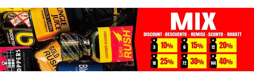 N'oubliez pas non plus que dans notre boutique de poppers, plus vous achetez de poppers, plus vous bénéficiez de réductions. Vous pouvez faire un mélange de poppers de différentes marques et de différentes tailles de flacons, entre les poppers petits, les poppers moyens et les poppers grands.