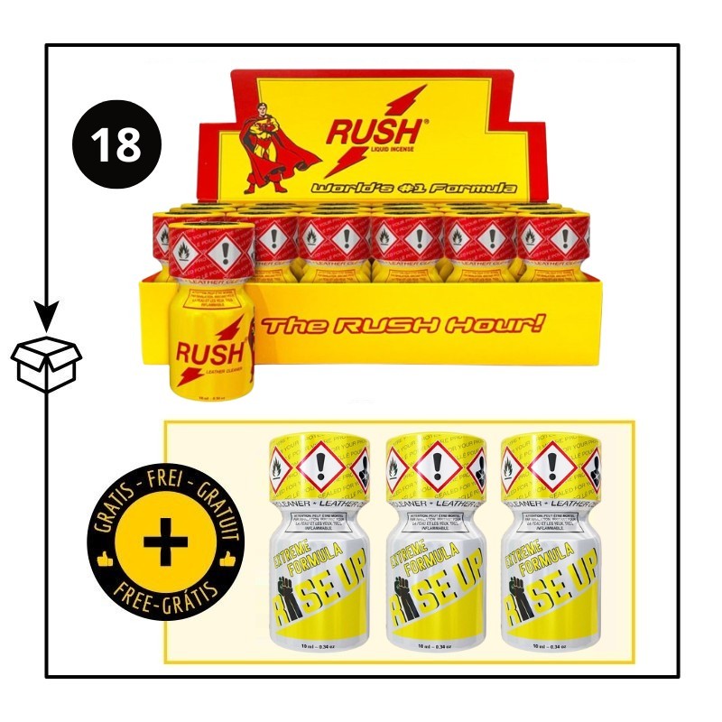 Questo set di bottoni automatici contiene: 18 bottoni automatici Rush Original da 10ml e 3 Rise Up 10ml gratuiti